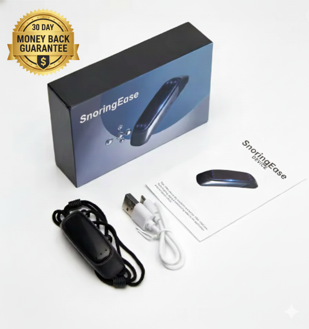 SnoringEase™ uses clinically proven EMS neurostimulation technology to strengthen the throat muscles—the root cause of snoring. In just 10 minutes before bed, can help naturally open your airway, restoring quiet, restful sleep for you and your partner. FDA-cleared, doctor-endorsed, and trusted by thousands who've tried everything else without success.